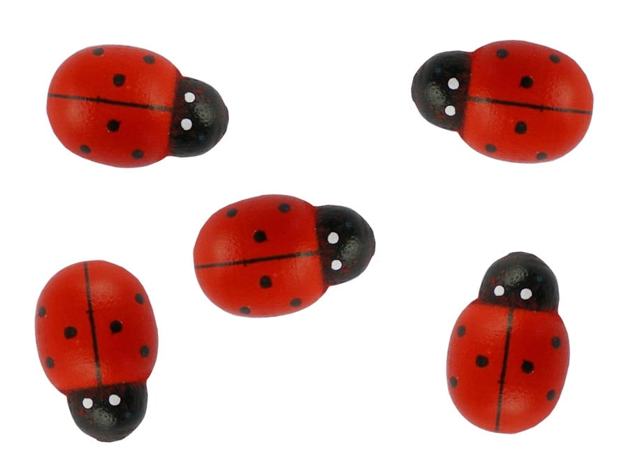 Piękne czerwone biedroneczki wykonane z drewna na przylepcu