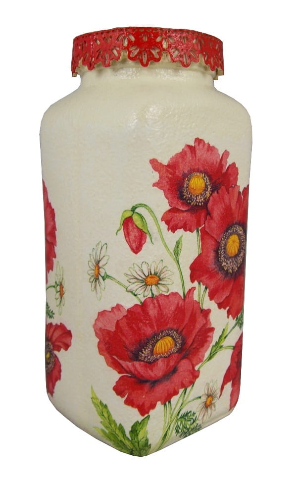 Słoik szklany ręcznie ozdobiony techniką decoupage.
