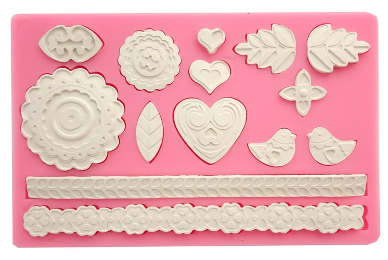 Foremka silikonowa - kwiaty, serca, bordery