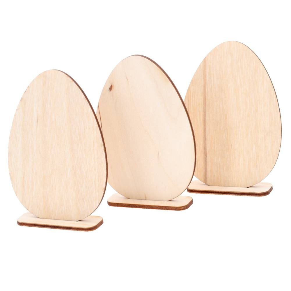 Jajo drewniane, jajko z podstawką 10cm - 3 sztuki