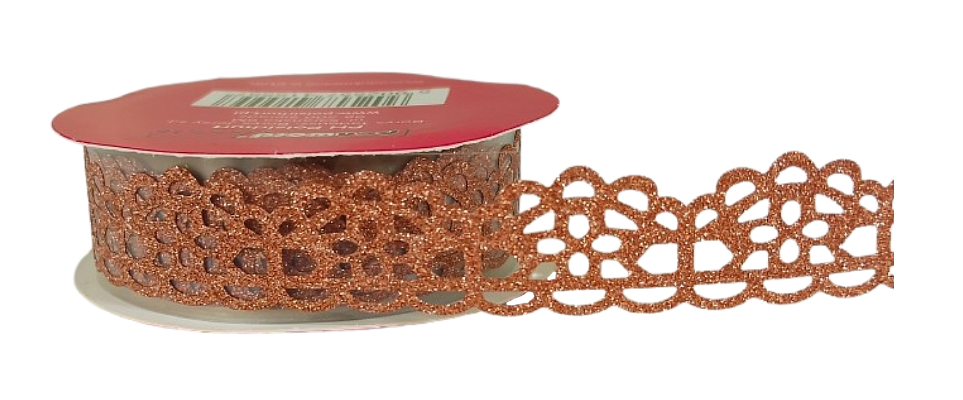 Koronka samoprzylepna brokatowa 1m wzorek - miedziana