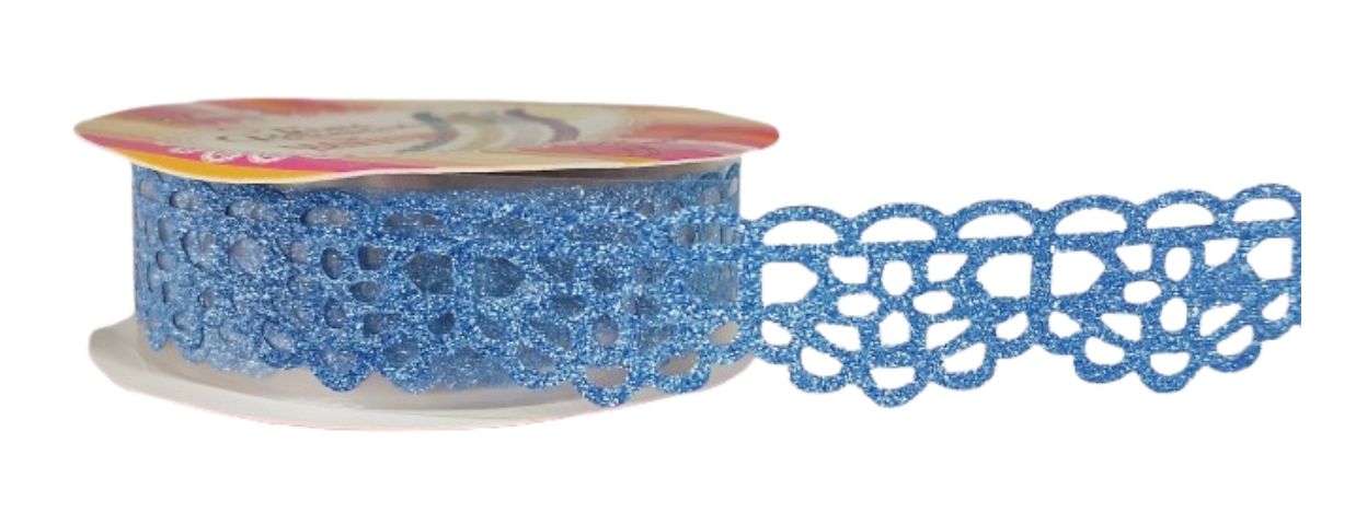 Koronka samoprzylepna brokatowa 1m wzorek - niebieska