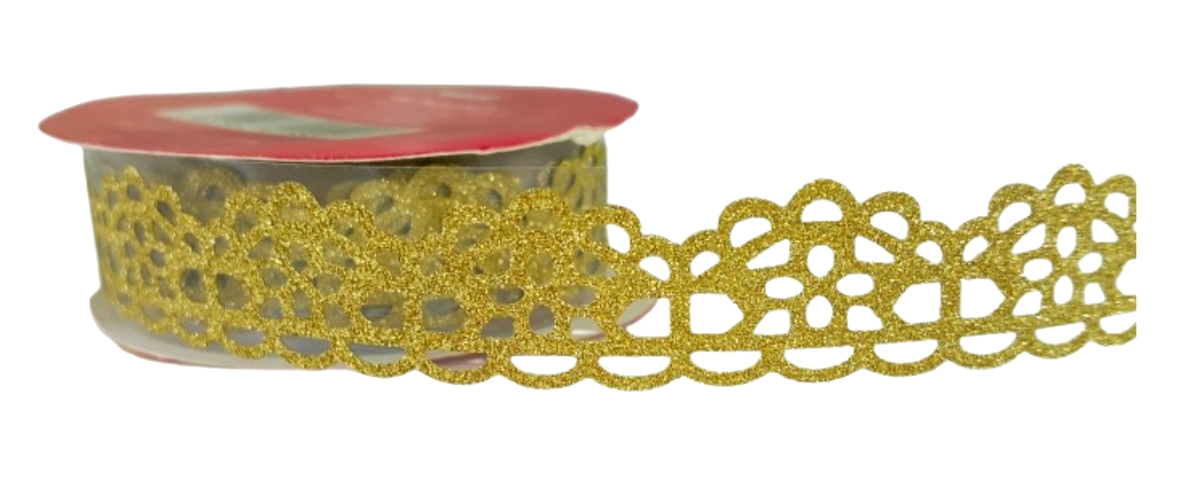 Koronka samoprzylepna brokatowa 1m wzorek - złota