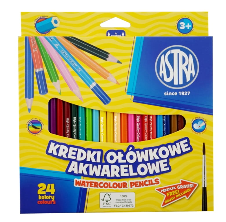 Kredki ołówkowe akwarelowe 24 kolory Astra + pędzelek