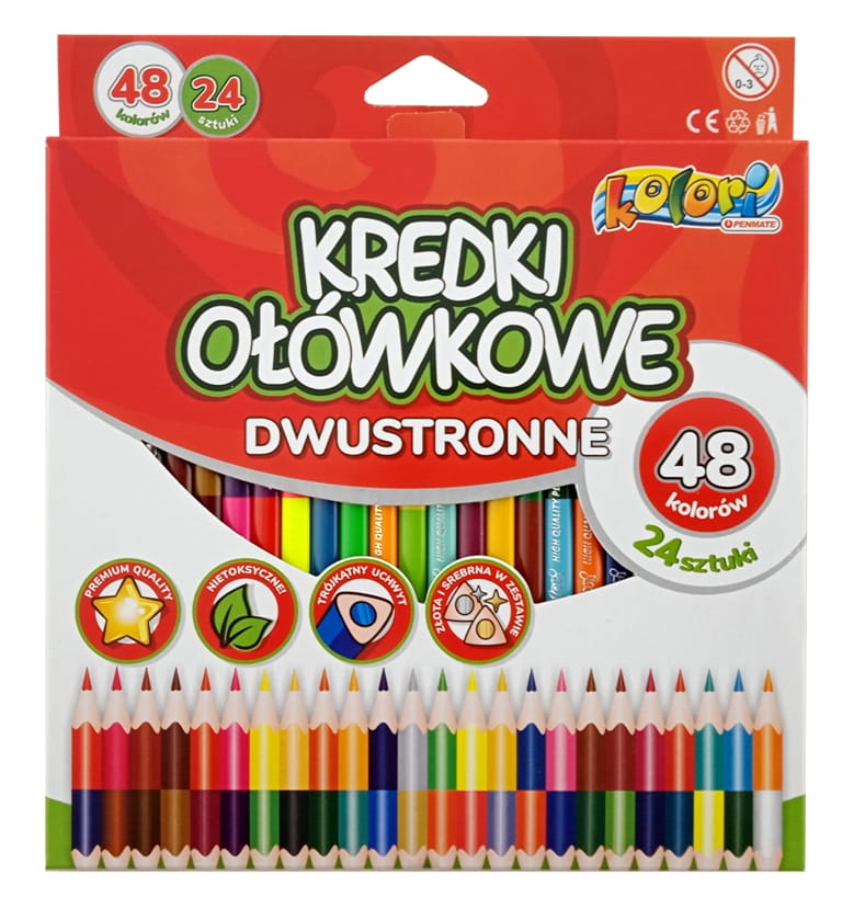 Kredki ołówkowe trójkątne dwustronne 24szt 48 kolorów