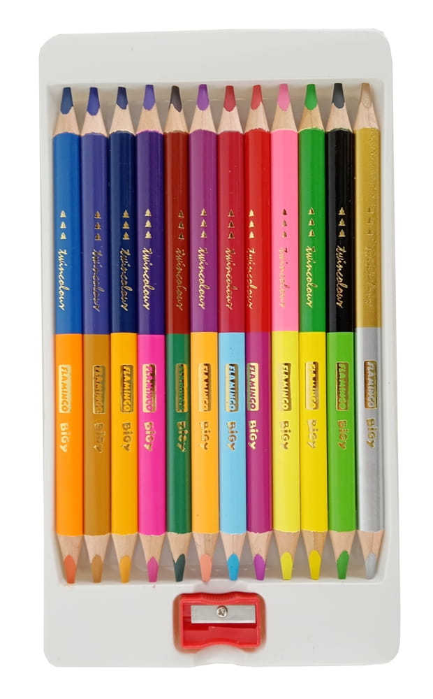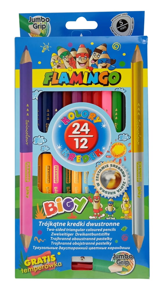 Kredki ołówkowe trójkątne dwustronne GRUBE 24 kolory + temperówka