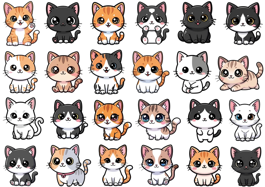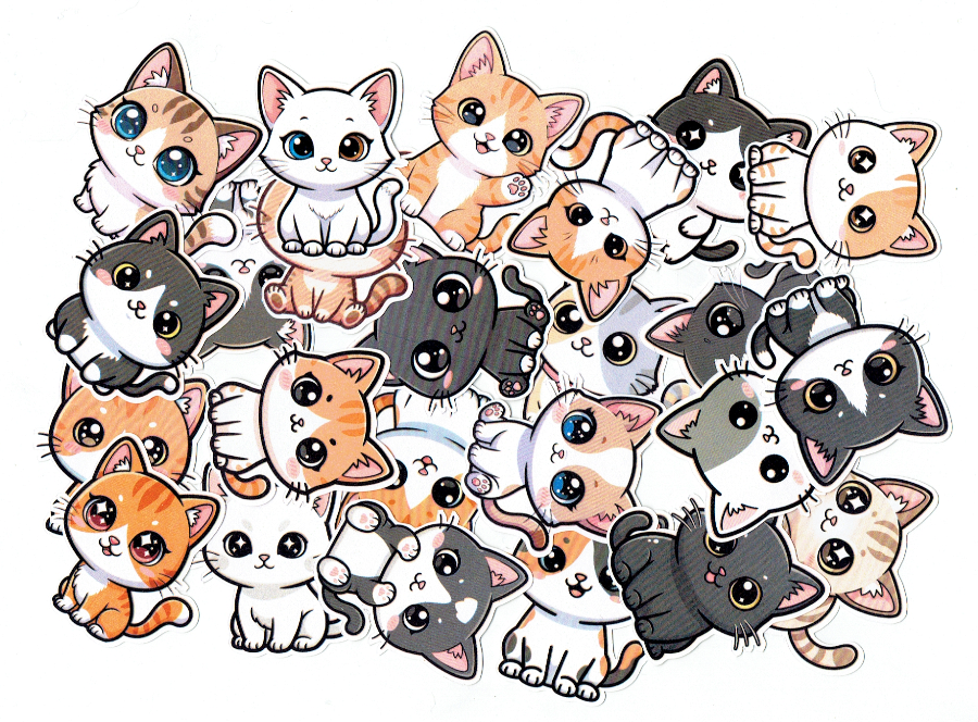 Naklejki, stickersy papierowe 24 sztuki - koty, kotki