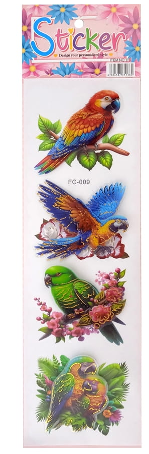 Naklejki foliowe 3D - ptaki, ptaszki, Papugi, kwiaty
