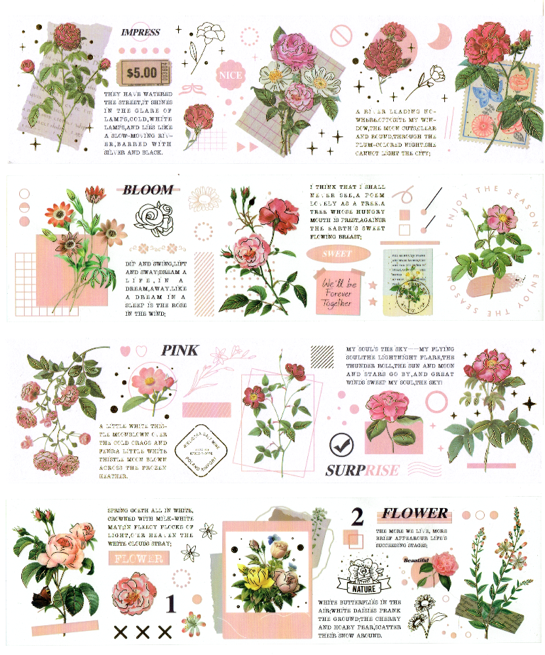 Naklejki foliowe i papierowe zestaw 4 arkusze - kwiaty, napisy