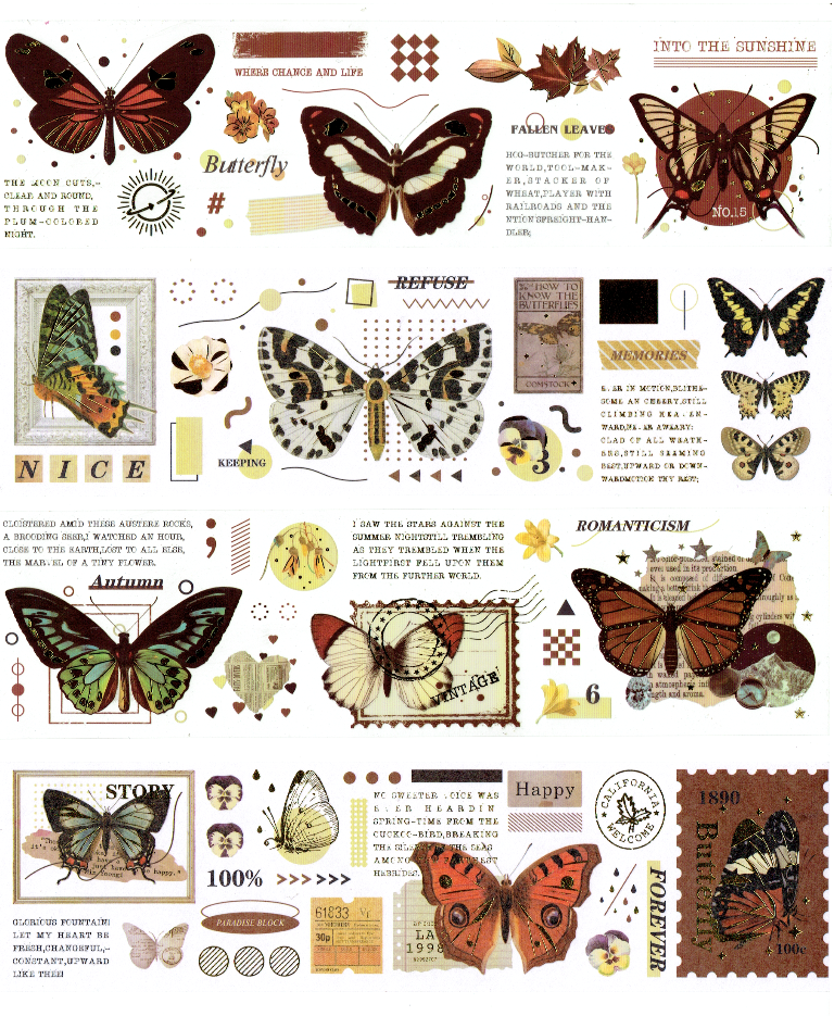 Naklejki foliowe i papierowe zestaw 4 arkusze - motyle, napisy