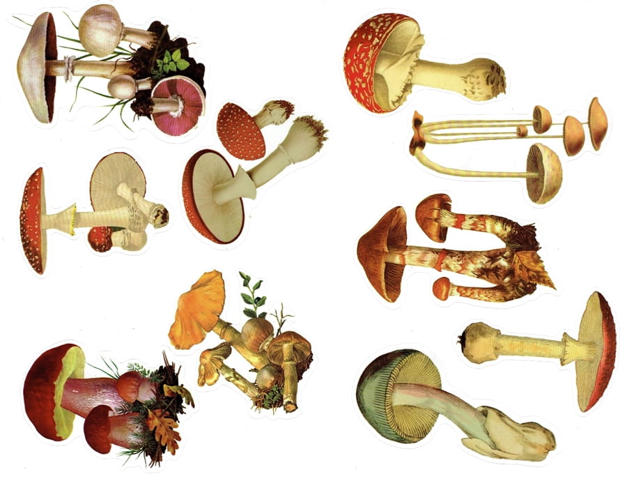 Naklejki foliowe zestaw 10 sztuk - grzyby