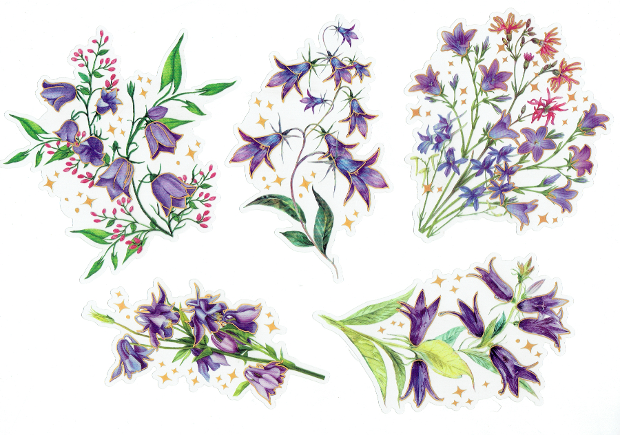 Naklejki foliowe zestaw 10 sztuk - kwiaty, dzwonki