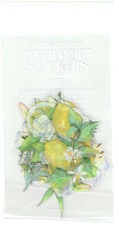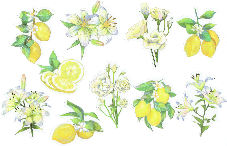 Naklejki foliowe zestaw 10 sztuk - kwiaty, lilie, owoce, cytryny