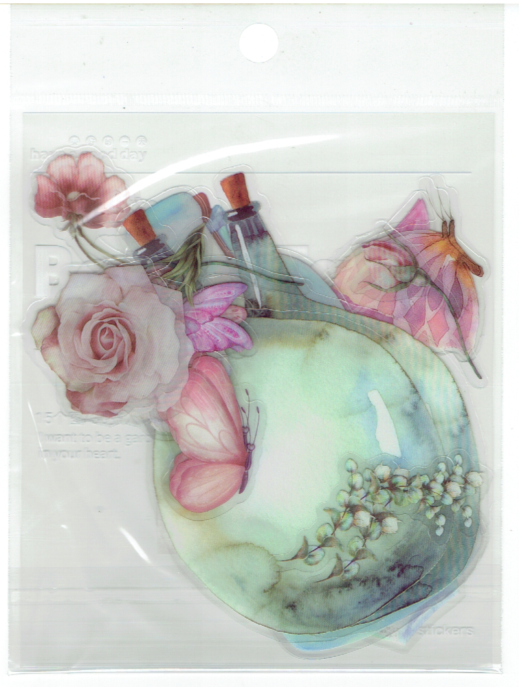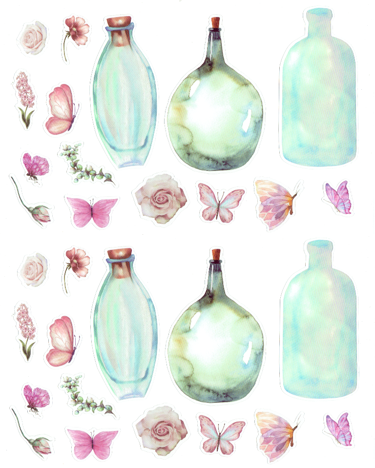 Naklejki foliowe zestaw 30 sztuk - kwiaty, motyle, butelki
