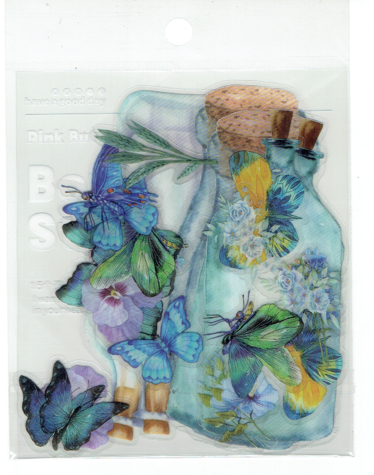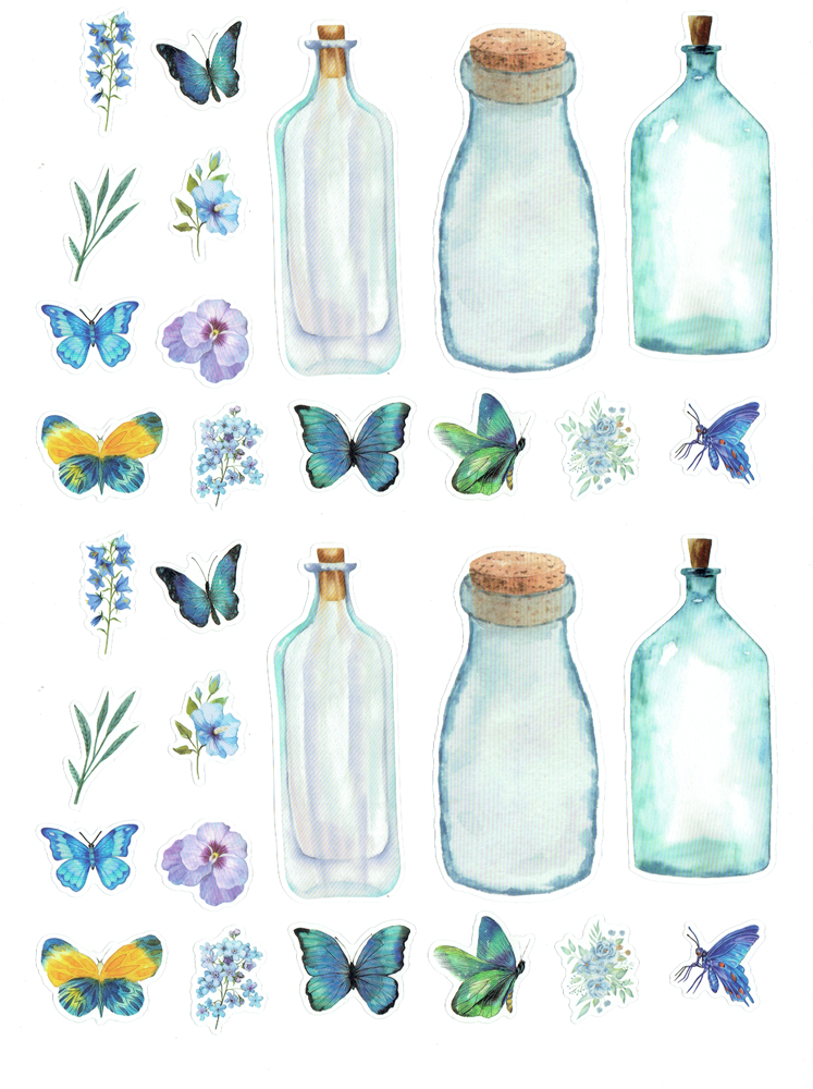 Naklejki foliowe zestaw 30 sztuk - kwiaty, motyle, liście, butelki