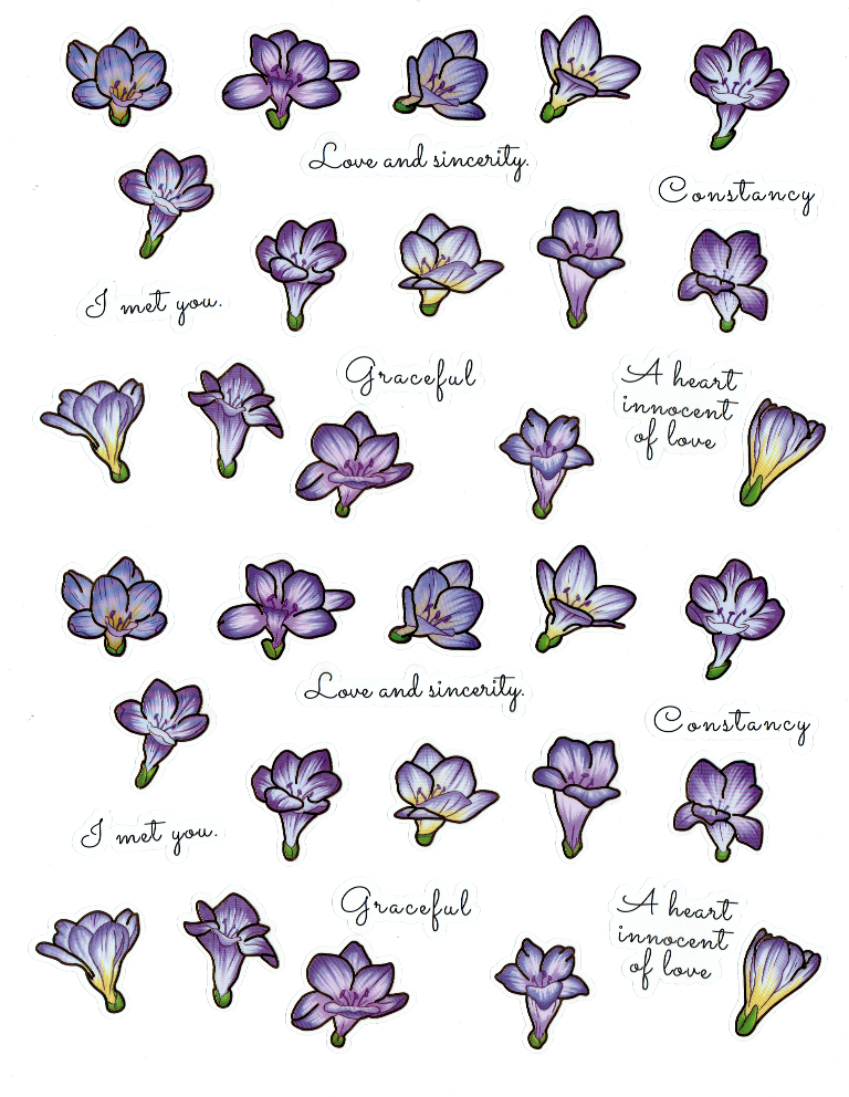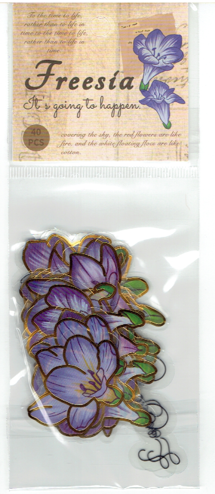 Naklejki foliowe zestaw 40 sztuk - kwiaty, frezje, napisy