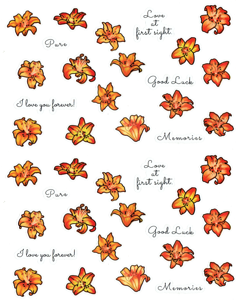 Naklejki foliowe zestaw 40 sztuk - kwiaty, lilie, napisy