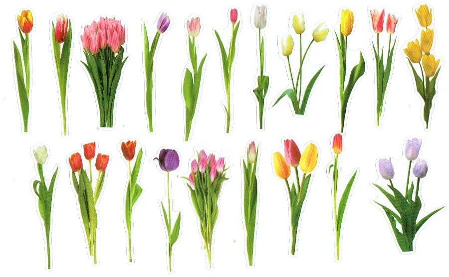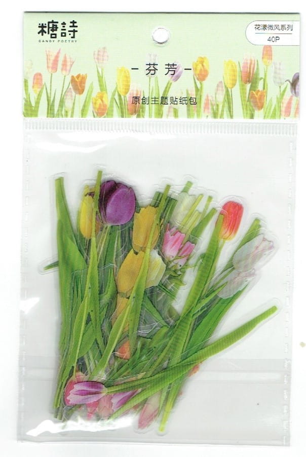 Naklejki foliowe zestaw 40 sztuk - kwiaty, tulipany