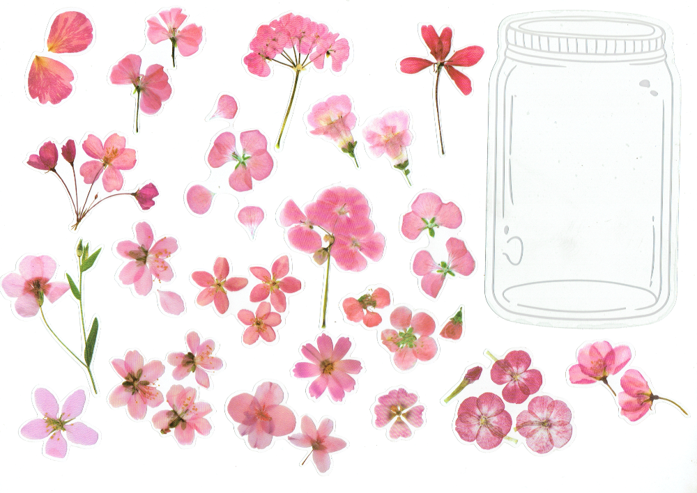 Naklejki foliowe zestaw 40 sztuk - kwiaty + słoik
