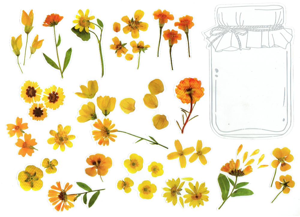 Naklejki foliowe zestaw 40 sztuk - kwiaty + słoik