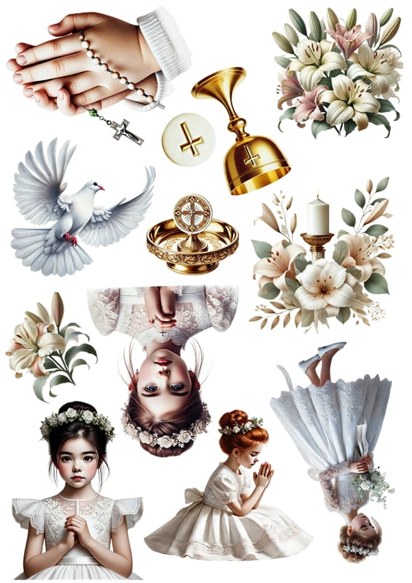 Papier klasyczny A4 Artando do decoupage - Pierwsza Komunia Święta, dziewczynka, kwiaty