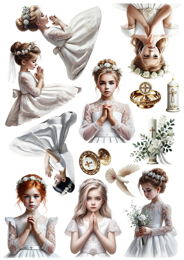 Papier klasyczny A4 Artando do decoupage - Pierwsza Komunia Święta, dziewczynka, kwiaty
