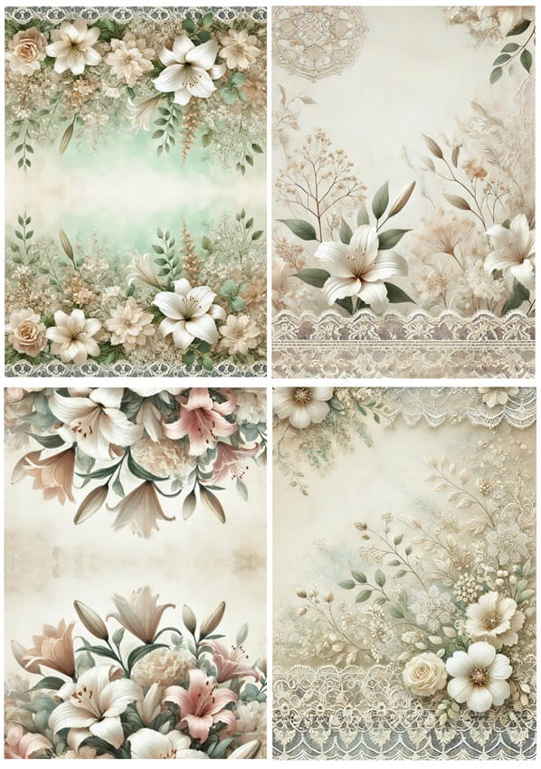 Papier klasyczny A4 Artando do decoupage - Pierwsza Komunia Święta, koronki, kwiaty, lilie
