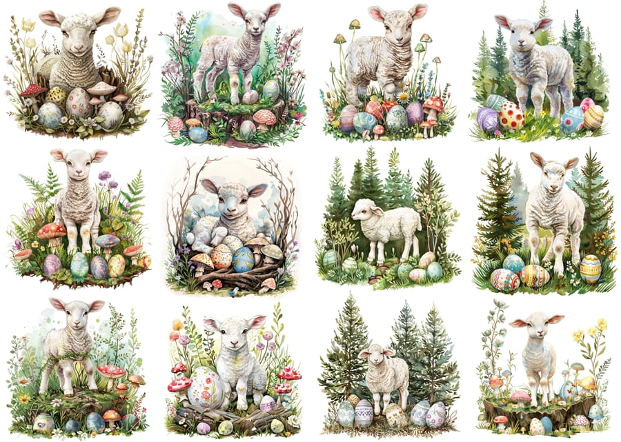 Papier klasyczny A4 do decoupage - Wielkanoc, baranki, owieczki, jagnięta, pisanki, grzyby, las
