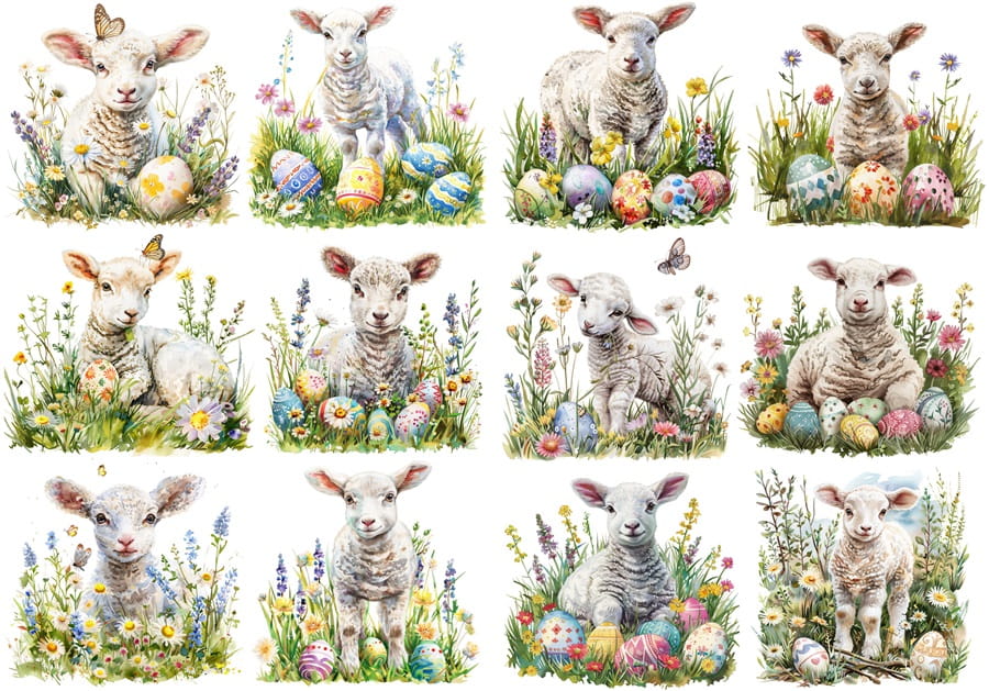 - Wielkanoc, baranki, owieczki, jagnięta, pisanki, kwiaty