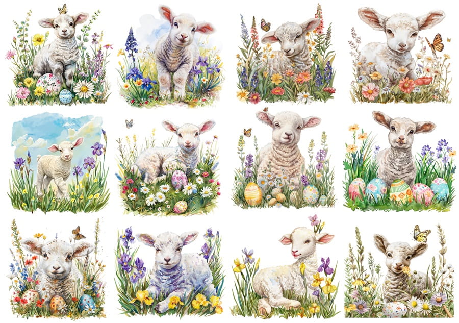 Papier klasyczny A4 do decoupage - Wielkanoc, baranki, owieczki, jagnięta, pisanki, kwiaty