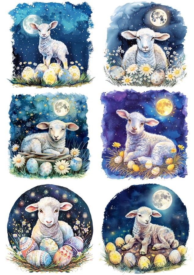 Papier klasyczny A4 do decoupage - Wielkanoc, baranki, owieczki, jagnięta, pisanki, noc