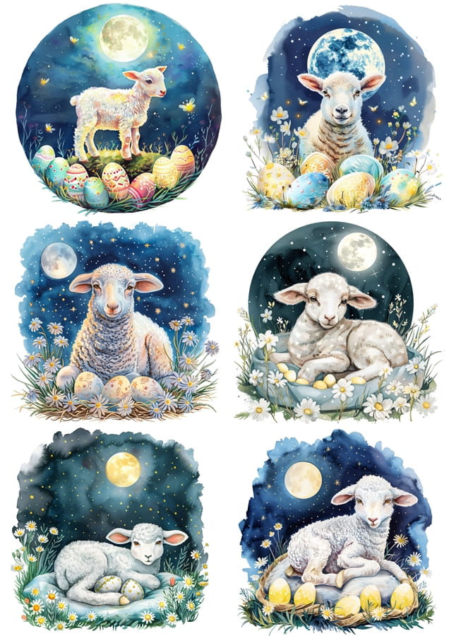 Papier klasyczny A4 do decoupage - Wielkanoc, baranki, owieczki, jagnięta, pisanki, noc