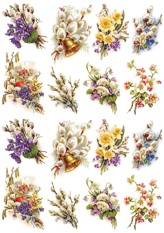 Papier klasyczny A4 do decoupage - Wielkanoc, bazie, kwiaty