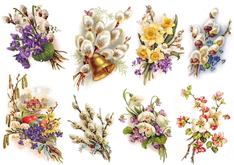 Papier klasyczny A4 do decoupage - Wielkanoc, bazie, kwiaty