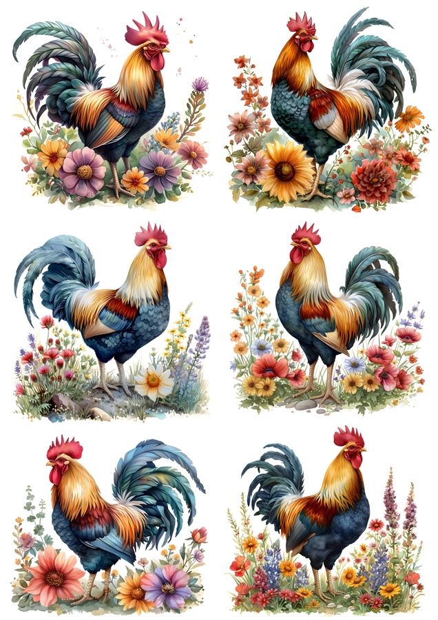 Papier klasyczny A4 do decoupage - Wielkanoc, koguty, ptaki, kwiaty