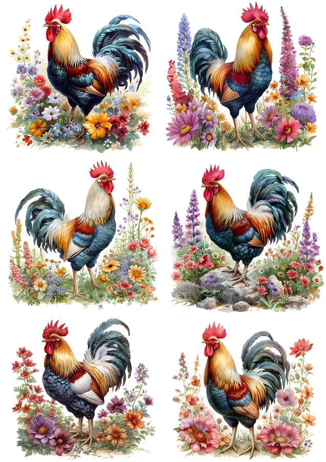 Papier klasyczny A4 do decoupage - Wielkanoc, koguty, ptaki, kwiaty