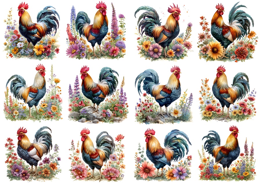 Papier klasyczny A4 do decoupage - Wielkanoc, koguty, ptaki, kwiaty