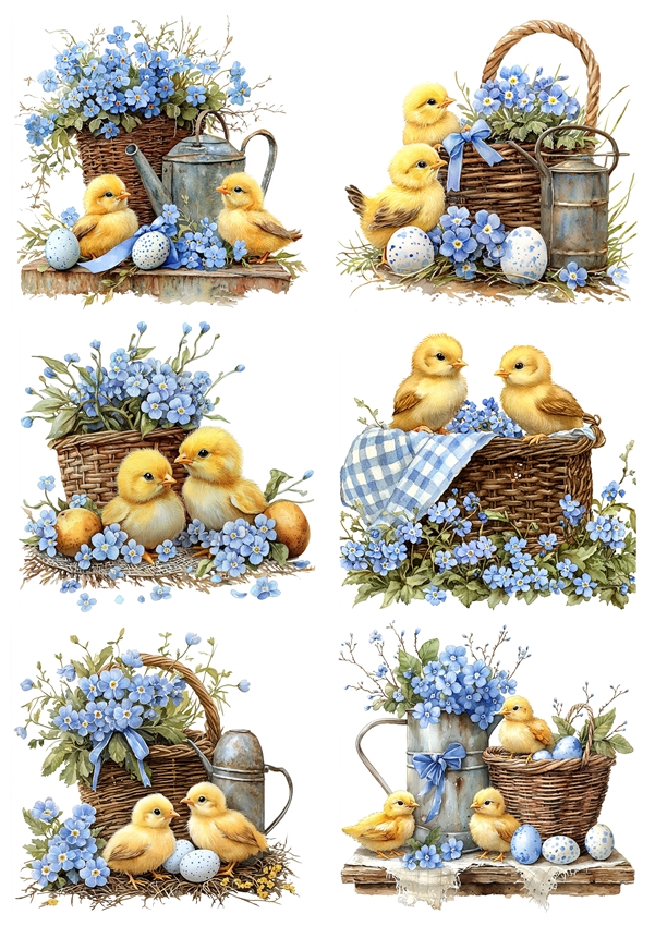 Papier klasyczny A4 do decoupage - Wielkanoc, kurczaki, koszyki, kwiaty, niezapominajki