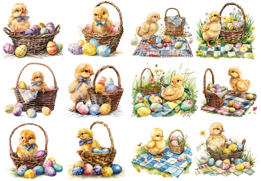 - Wielkanoc, kurczaki, pisanki, koszyki, piknik
