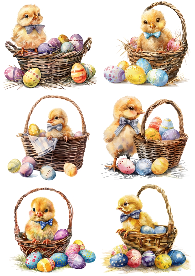 Papier klasyczny A4 do decoupage - Wielkanoc, kurczaki, pisanki, koszyki