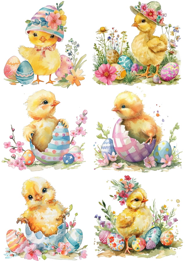 Papier klasyczny A4 do decoupage - Wielkanoc, kurczaki, pisanki, kwiaty