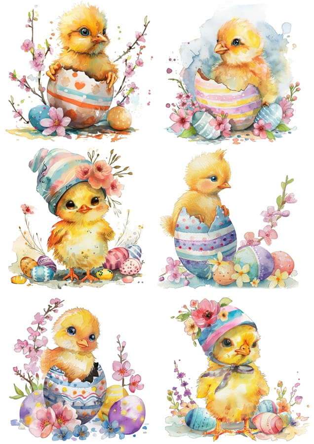 Papier klasyczny A4 do decoupage - Wielkanoc, kurczaki, pisanki, kwiaty