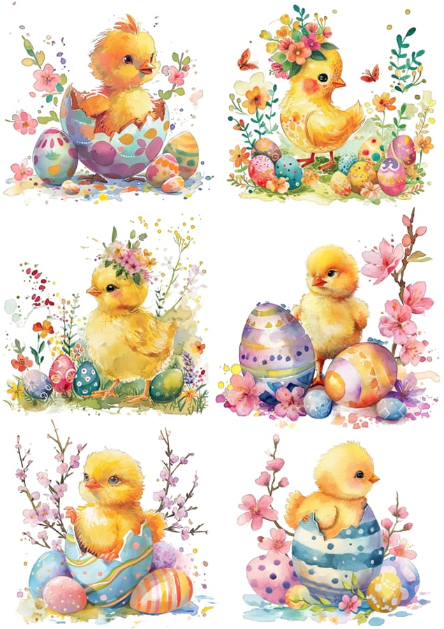 Papier klasyczny A4 do decoupage - Wielkanoc, kurczaki, pisanki, kwiaty
