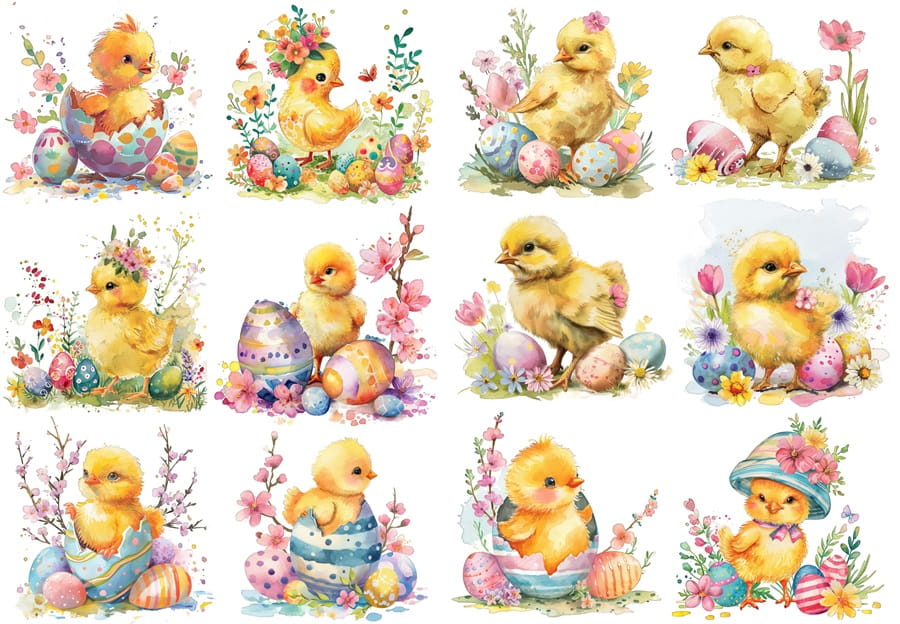 Papier klasyczny A4 do decoupage - Wielkanoc, kurczaki, pisanki, kwiaty