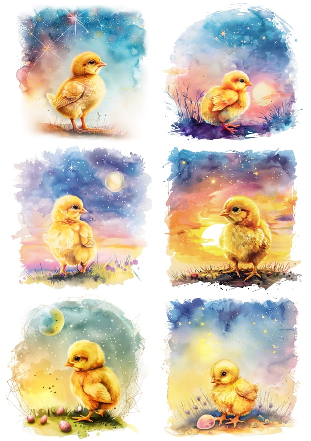 Papier klasyczny A4 do decoupage - Wielkanoc, kurczaki, pisanki, noc, księżyc