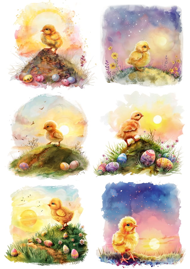 Papier klasyczny A4 do decoupage - Wielkanoc, kurczaki, pisanki, noc, księżyc