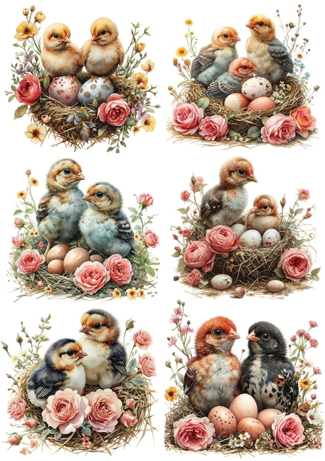 Papier klasyczny A4 do decoupage - Wielkanoc , kurczaki, jajka, gniazdka, kwiaty
