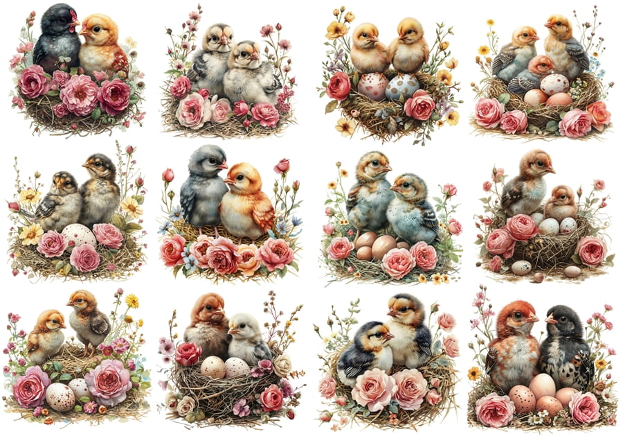 Papier klasyczny A4 do decoupage - Wielkanoc , kurczaki, jajka, gniazdka, kwiaty