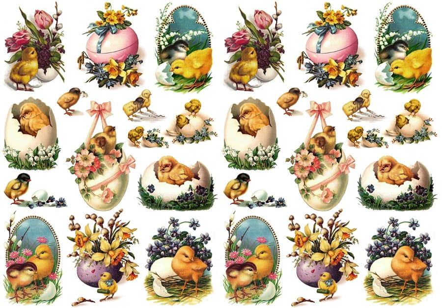 Papier klasyczny A4 do decoupage - Wielkanoc , kurczaki, pisanki, jajka, kwiaty