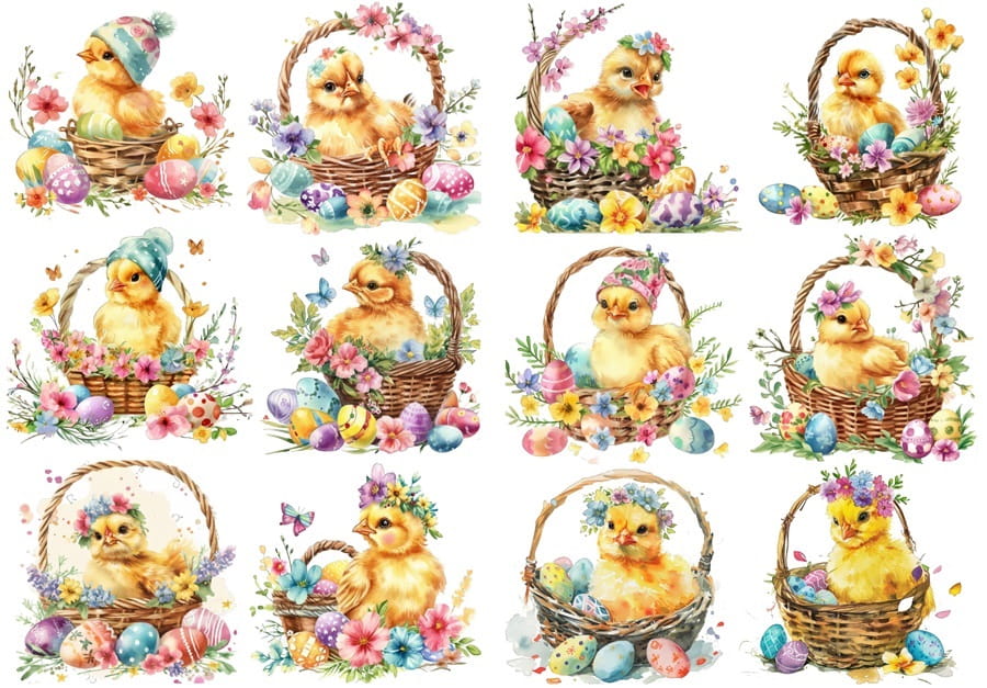 Papier klasyczny A4 do decoupage - Wielkanoc , kurczaki, pisanki, koszyki, kwiaty